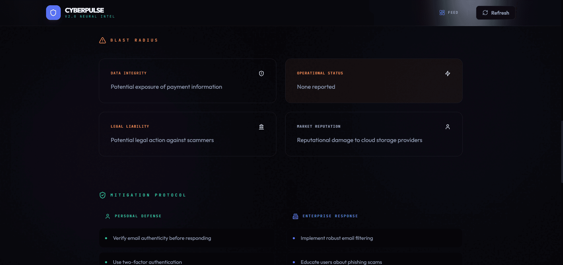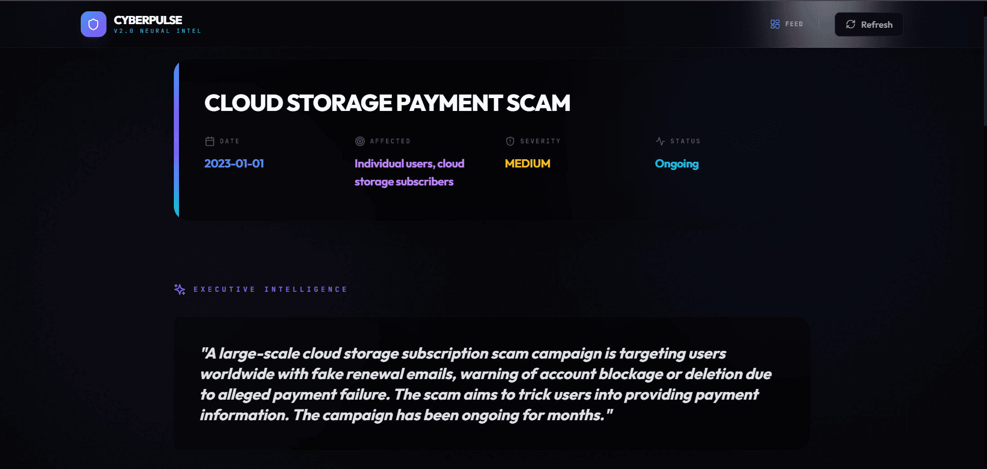 Next-generation threat monitoring powered by AI. Real-time analysis of global cyber security incidents.